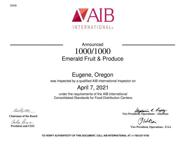 At Emerald Fruit and Produce, our food safety policies and procedures are in place to ensure that we provide safe and quality produce to all of our customers.